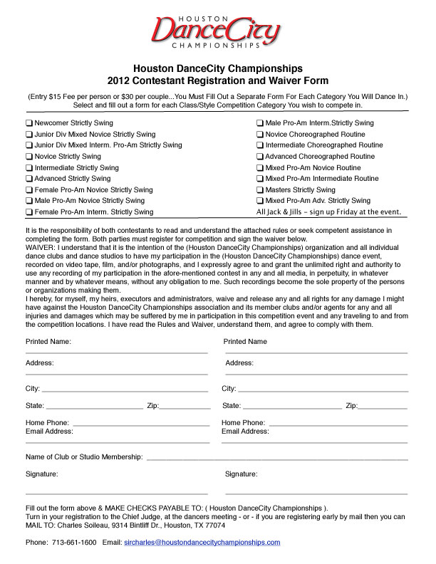 HOME • ABOUT US • EVENT SCHEDULE • WORKSHOPS • REGISTRATION • RULES • TICKETS • TABLE RESERVATIONS LOCATION MAP • HOTELS • DVD ORDERS • COMPETITION RESULTS EVENT LOCATION: THE MELODY CLUB • 3027 Crossview Drive • Houston, TX 77063 • 713-785-5301 • www.melodyclub.net FOR MORE INFORMATION CONTACT: CHARLES SOILEAU 713-661-1600• EMAIL: sircharles@houstondancecitychampionships.com